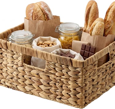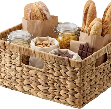 StorageWorks Large Rectangular Wicker Basket, Water Hyacinth Storage Basket with Built-in Handles, 1 Pack