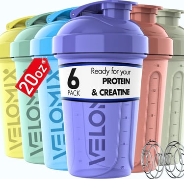 VELOMIX -6 PACK- 20 oz Protein Shaker Bottle for Protein Mixes - 6x Wire Whisk | Leak Proof Shaker Cups for Protein Shakes | Stackable Protein Shaker Bottle Pack | Dishwasher Safe (Pastel Shades)