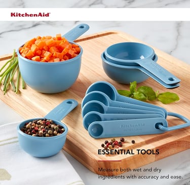 KitchenAid Universal Easy To Read Measuring Cup and Spoon Set with Soft Grip Handle for Maximum Control, Hang Hole and Nesting For Easy Storage, Dishwasher Safe, 9 Piece, Blue Velvet