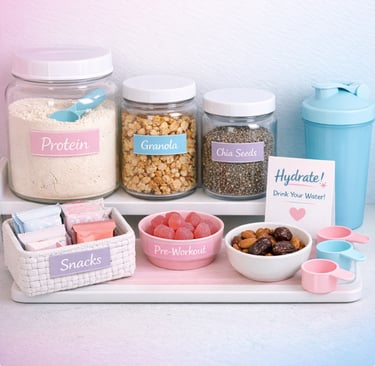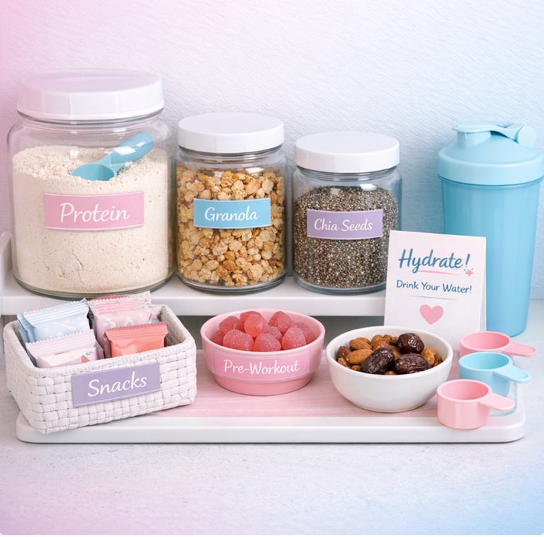 Creating a protein snack station that’s both functional and aesthetic is easier than you think. This pastel-inspired setup blends fitness motivation with home organization.