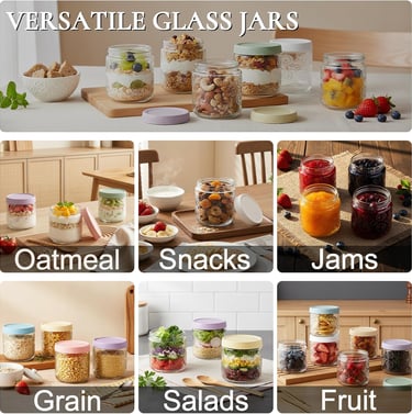 6 pack 16 oz Overnight Oats Containers with Lids, Glass Food Storage Container, Airtight Salad Jars, Mason Jars for Overnight Oats, Yogurt, Oatmeal, Salad, Coffee, Spices
